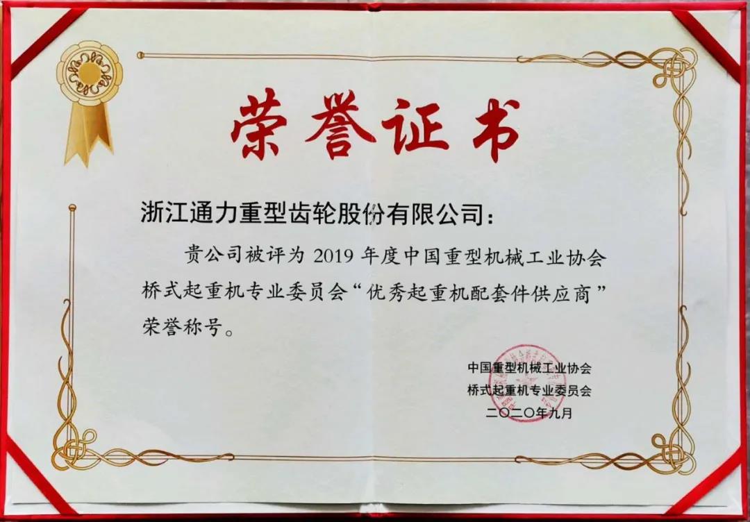 近日,通力收到了一份中國重型機械工業協會橋式起重機專業委員會頒發的榮譽證書,通力被評為2019年度中國重型機械工業協會橋式起重機專業委員會“優秀起重機配套件供應商”的榮譽稱號。